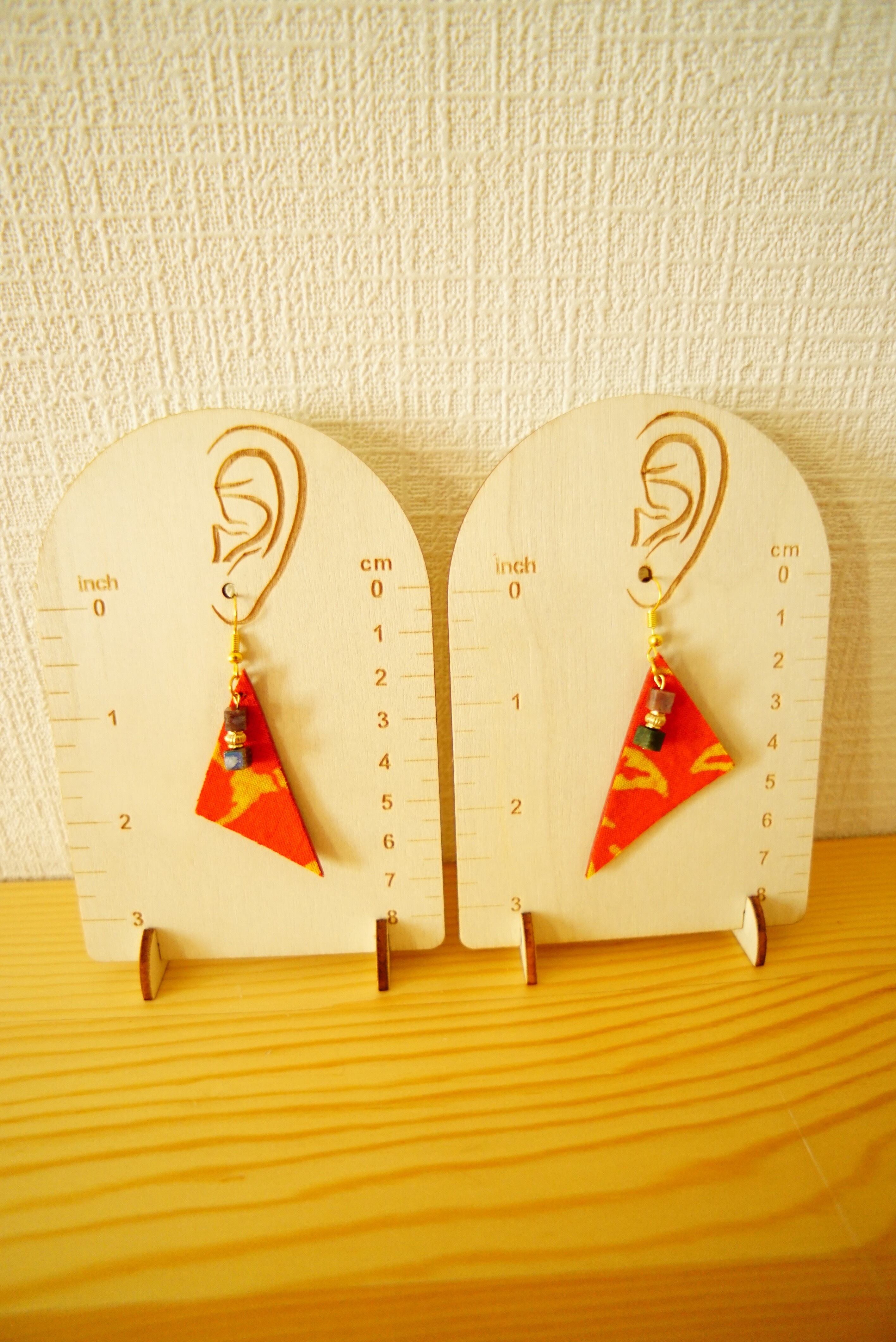 エキゾチックな布地が華やかさを引き立て、三角形のデザインが耳元で揺れるたびに華やかな印象を与えます。デイリーコーディネートにぴったりの一品で、見る人を魅了することでしょう。軽やかな重さで、長時間の着用でも快適にお楽しみいただけます。ひとつひとつ布の柄が異なり、あなただけの特別なアイテムとなります。